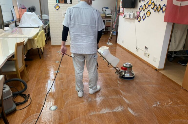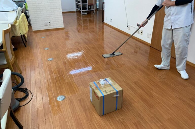 福祉清掃 デイサービス床清掃Wax|東京都 本日は東京都西東京市にあるデイサービスの床清掃を行いました。こちらの施設様は年1回で床清掃を実施させて頂いております。床清掃以外にもエアコンの分解洗浄や換気扇等の清掃作業も別日に作業させて頂きました。[参考価格]エアコン分解洗浄、換気扇洗浄、CF床、カーペットの作業で年間予算は20万円程度となります。エアコン分解洗浄作業換気扇清掃 一覧に戻る