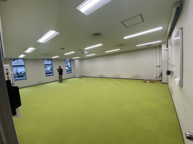 部屋内を明るく見せるためにPタイルからタイルカーペットに変更